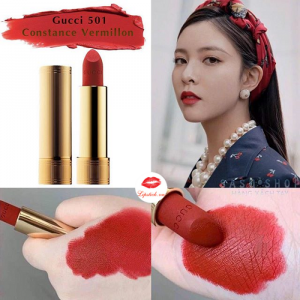 Review son Gucci Satin 505 Màu Đỏ Đất Cá Tính