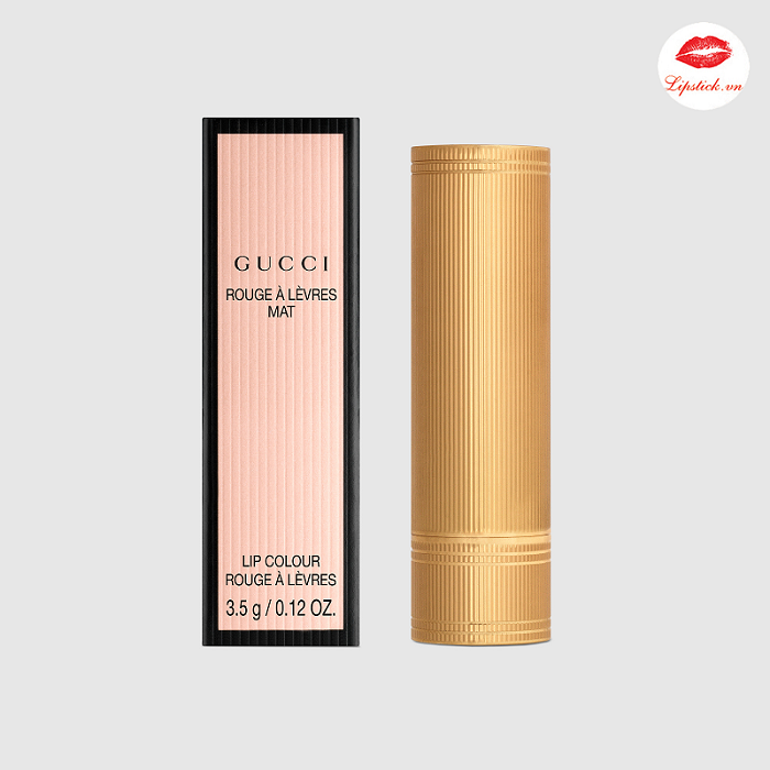 Mỗi dòng son Gucci đều cho ta thấy sự tinh tế, đầy thẩm mỹ mang tính nghệ thuật của người sáng tạo. Với dòng Gucci Rouge À Lèvres Matte Lipstick này, Gucci cho khoác một lớp vỏ vàng gold cùng những đường vân nhỏ chạy dọc thân son. Cùng với logo GUCCI được khắc nét thể hiện ở đầu nắp vỏ. Son Gucci 401 cầm trên tay vừa vặn, nhỏ gọn hết ý. Son thiết kế vát ở đầu ghi dấu chữ GUCCI , phủ nhung sang trọng thoa lên môi sang chảnh ngút ngàn.